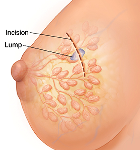 This is an open surgical biopsy done under general anesthesia where the entire lump is removed and wound closed up. There will be an incision scar and the diagnosis is most accurate. However, a second surgery may be needed if the lump is confirmed malignant.