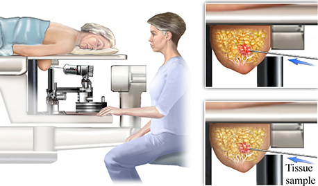 A tissue biopsy to diagnose breast cancer is part of the main investigation when an unusual breast lump is detected. A breast biopsy removes a small sample of breast tissue and is examined under a microscope to check for breast cancer. The approach to obtaining a breast biopsy has changed significantly over the years. Previously the only way to obtain a diagnosis of breast cancer is through a open surgical biopsy. However, now with better techniques and investigative tools, open excision biopsies has been replaced with preoperative diagnostic image guided biopsies.