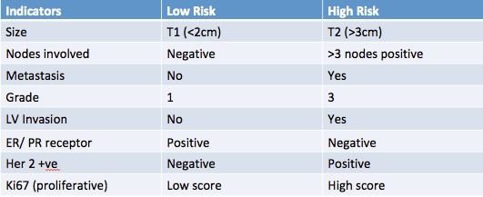 Several prognostic indicators will determine the risk of recurrence and survival rate. It also determines the optimal therapy for a patient with early stage breast cancer.